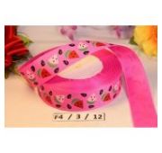 Репсовая лента с рисунком 25мм, цв.Розовый с арбузами * 1м